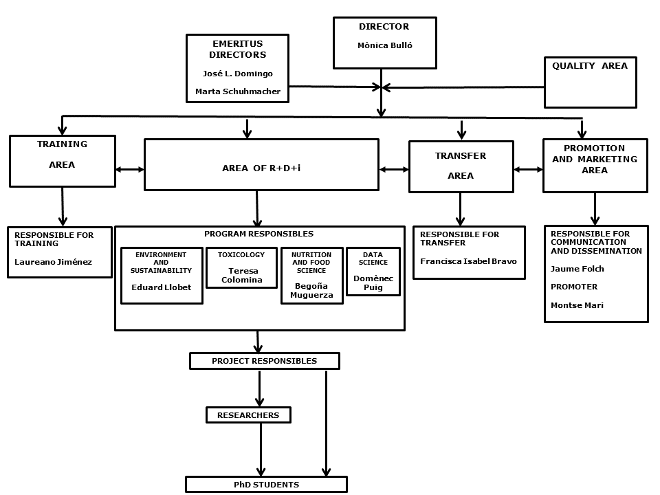 The organization of TecnATox is described by the following organization chart in which hierarchical and functional relationships are indicated: