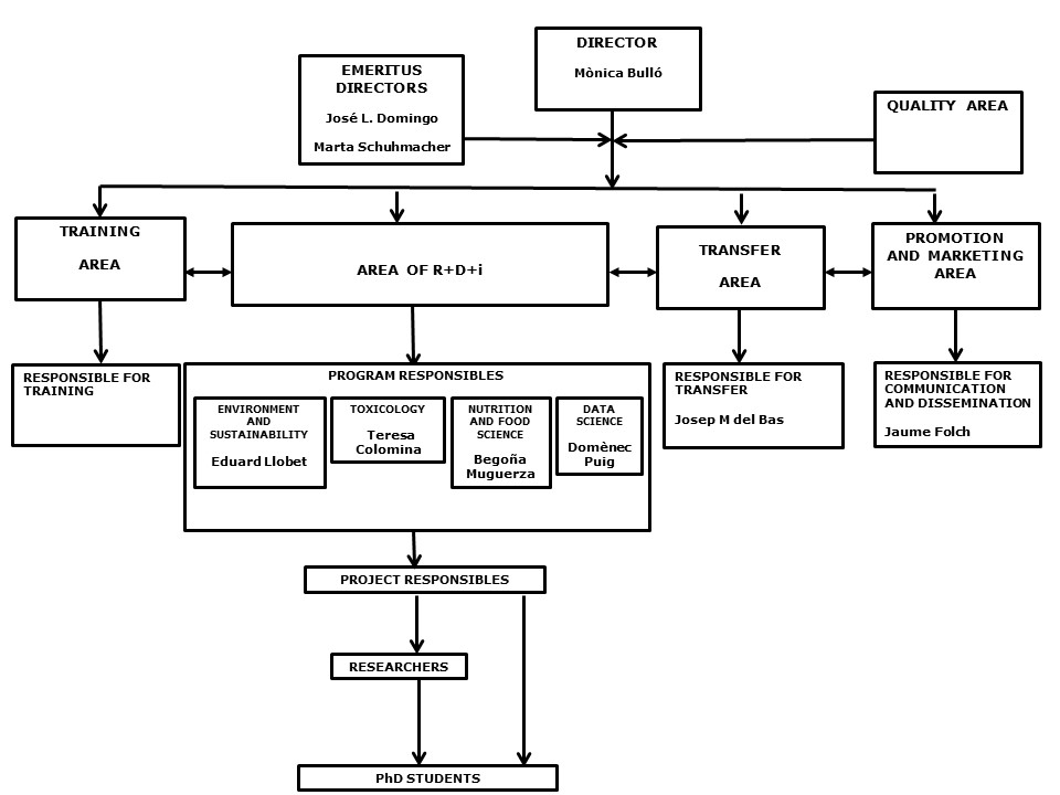 The organization of TecnATox is described by the following organization chart in which hierarchical and functional relationships are indicated: